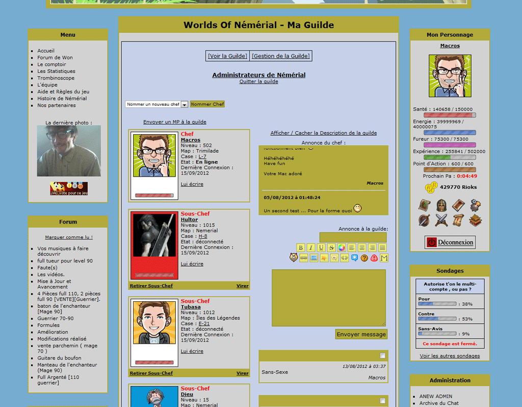Voila en gros les raisons qui nous poussent à prendre la décision de fermer le jeu. Pour le futur, je ne sais pas encore.